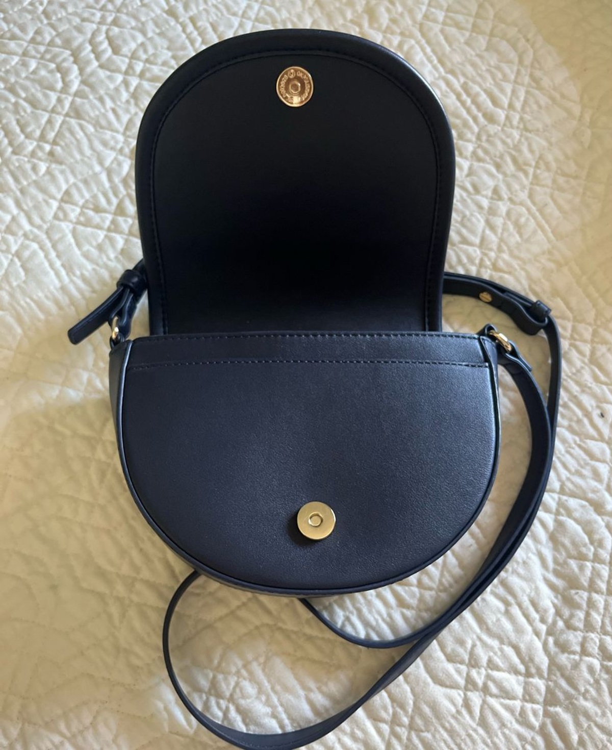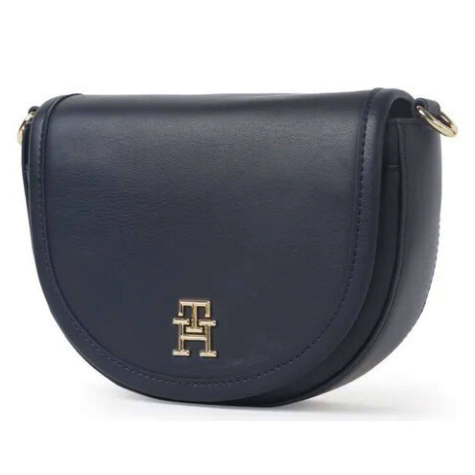 Bolsa Transversal Pequena Azul Marinho Com Logo Dourado