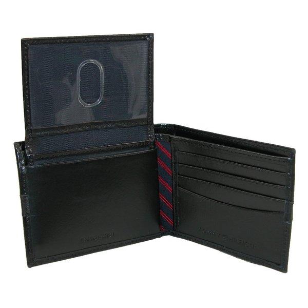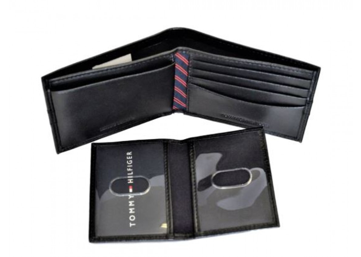 Tommy Hilfiger Carteira Masculina Preta Trifold Placa Metal