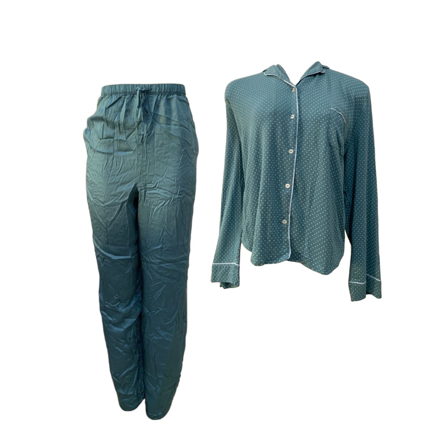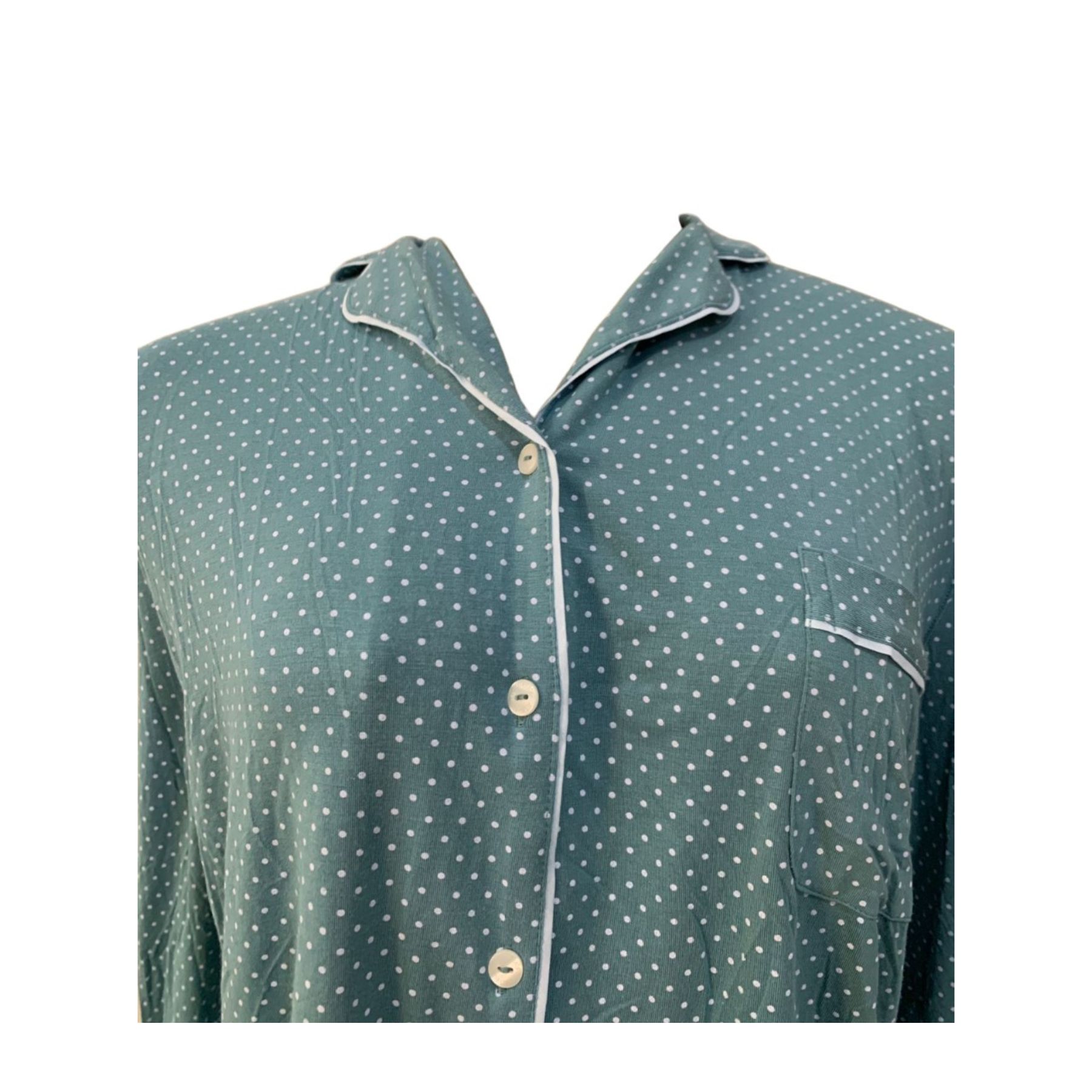 Conjunto De Pijama Verde Em Poa Com Calça e Blusa
