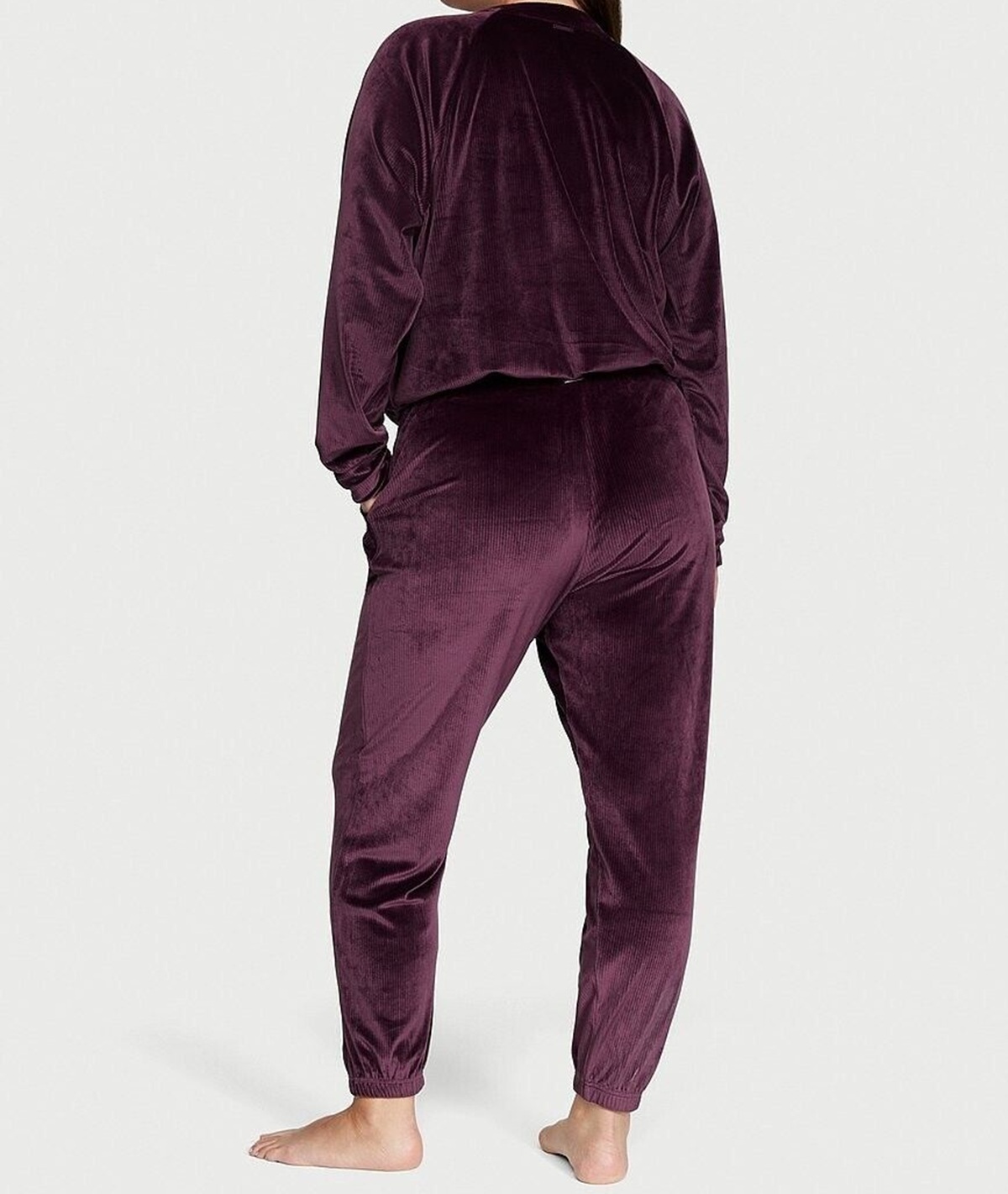 O veludo encontra a textura canelada aconchegante em um conjunto confortável e fofo. Entre na vibe do início dos anos 2000 combinando a calça jogger e o cassaco.
