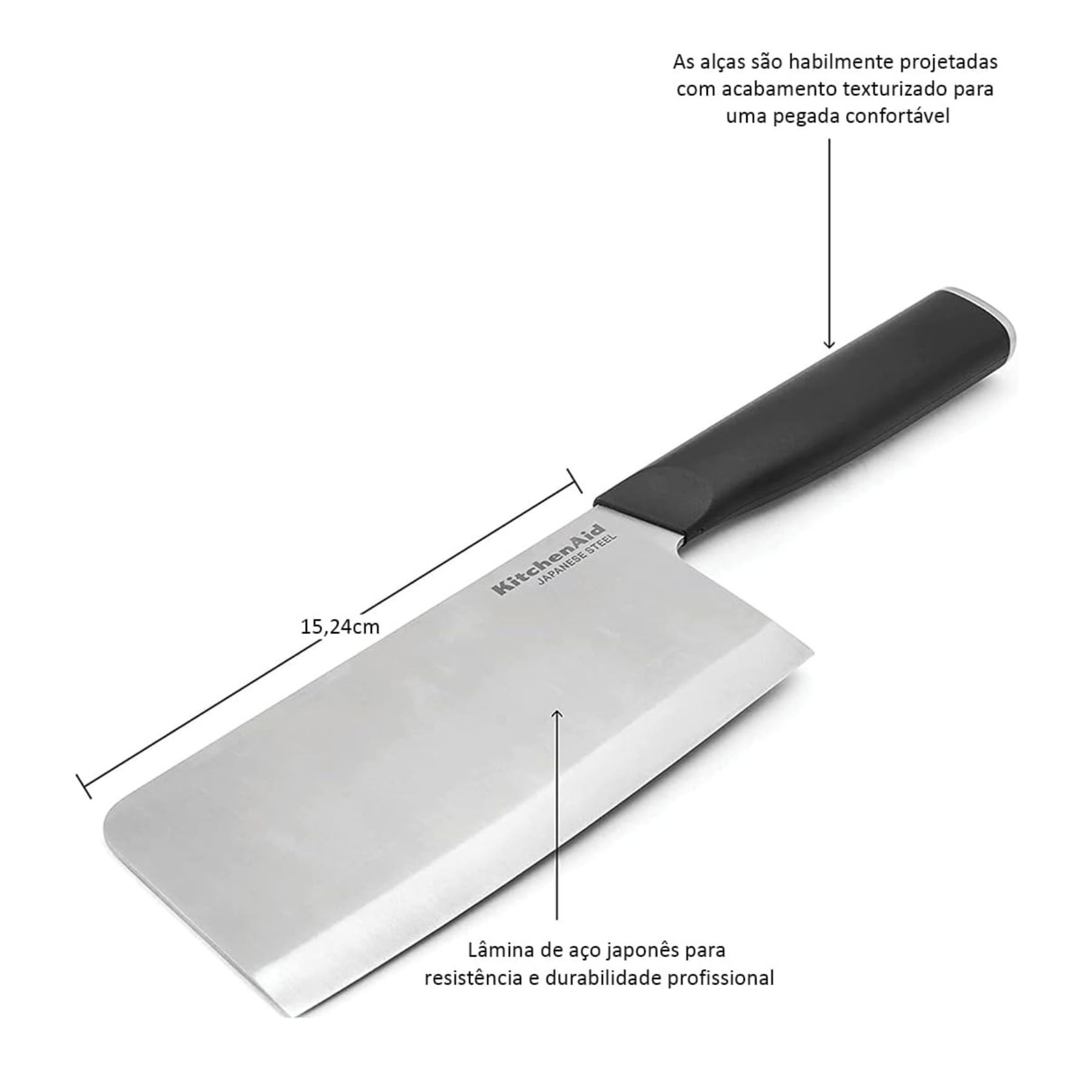 O cutelo KitchenAid é projetado para cortar facilmente carnes duras ou macias, a faca perfeita para preparar qualquer refeição.