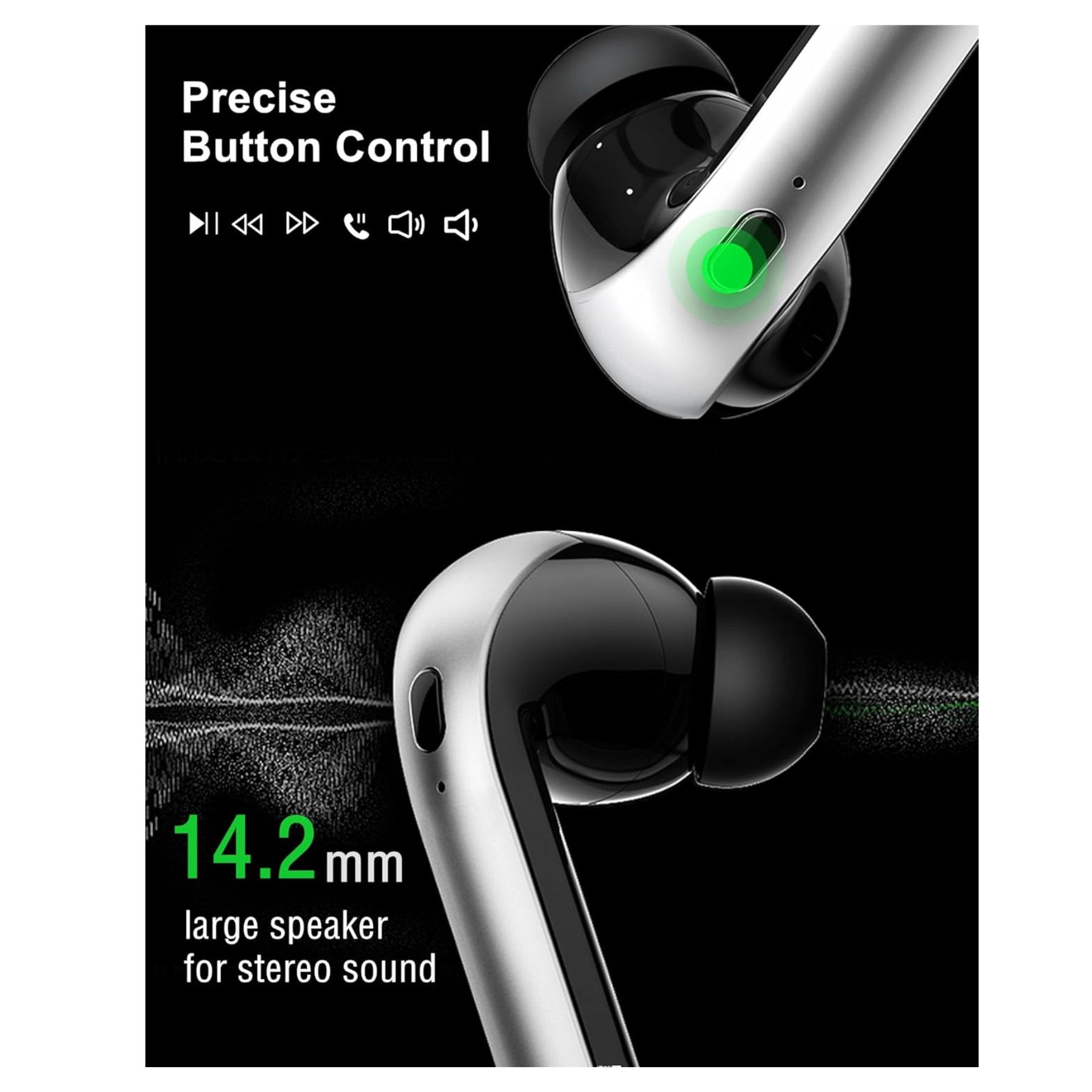 Os fones de ouvido sem fio possuem diversos tamanhos de pontas para orelhas pequenas e grandes. O design intra-auricular se encaixa perfeitamente no canal auditivo sem cair e é confortável de usar por longos períodos. Os fones de ouvido intra-auriculares com microfone possuem revestimento nano ultraleve para proteção contra poeira e chuva, além de serem extremamente leves, e as capas de silicone são mais macias para seu conforto em todas as situações.