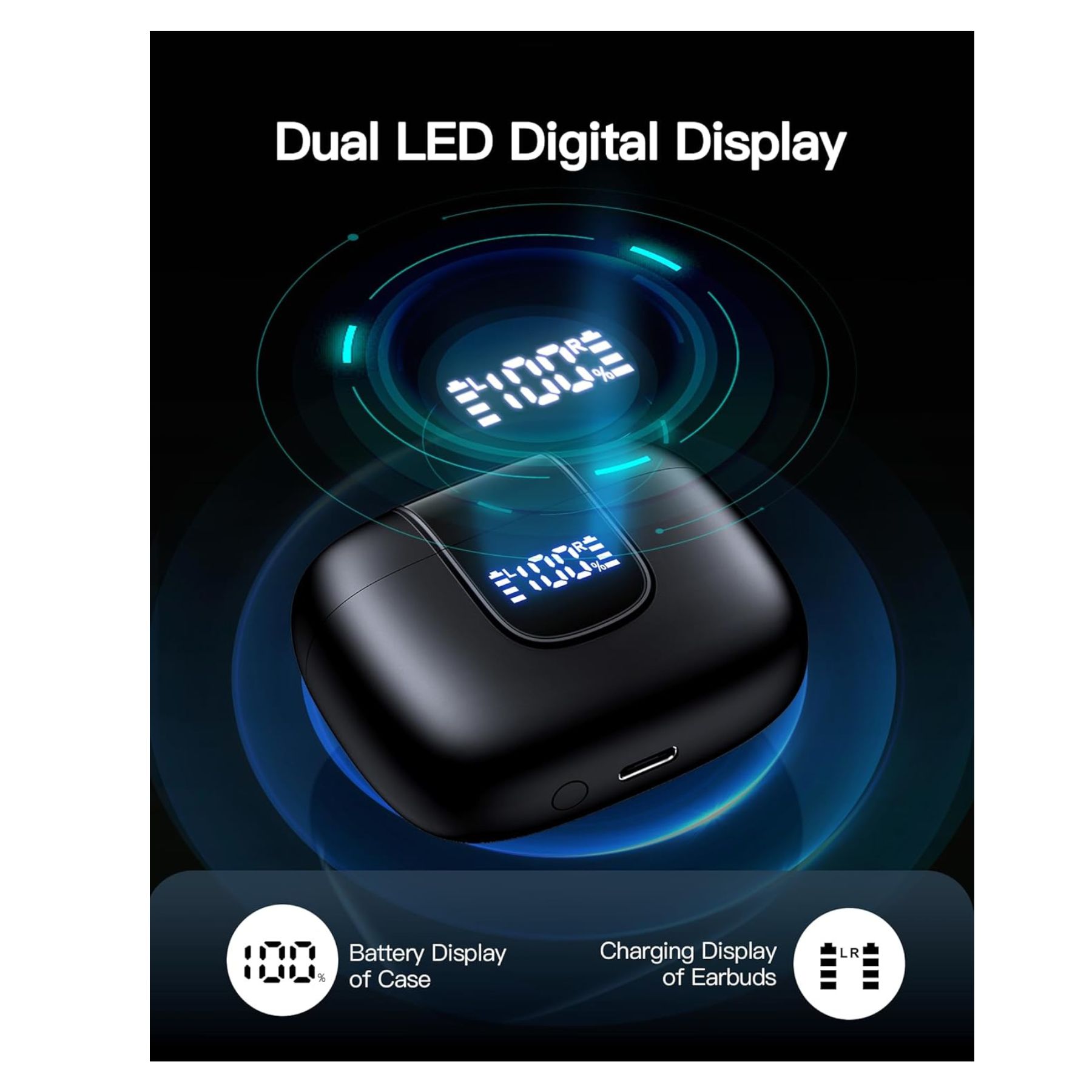 O estojo possui visor de energia LED duplo, permitindo que você verifique facilmente a carga restante do estojo e o status de carregamento dos fones de ouvido em tempo real.