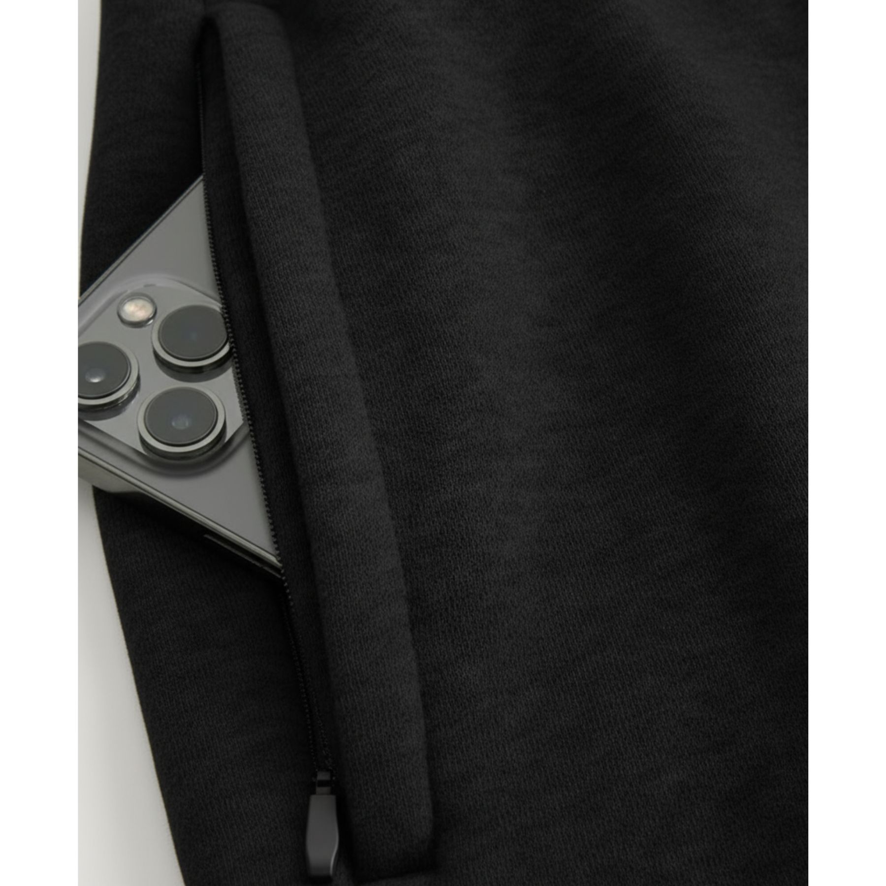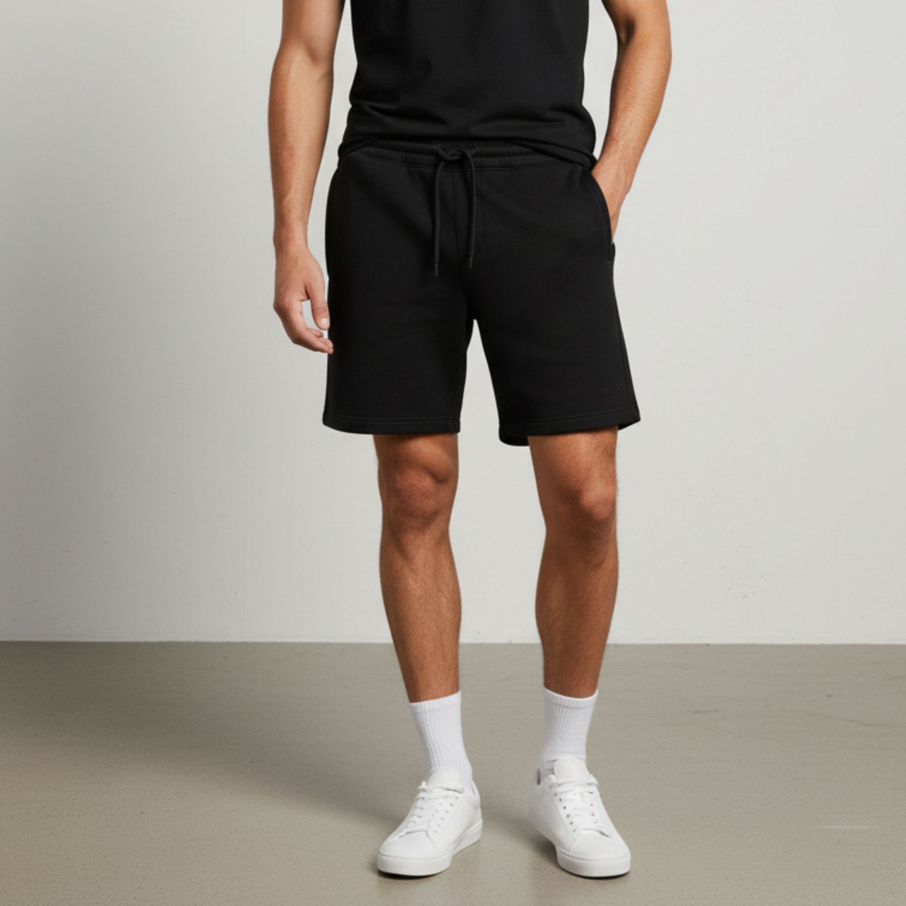 Shorts de moletom ( fleece) super macio que chegam até o meio da coxa, com modelagem solta e confortável nas pernas. Cintura com cordão, bolso com zíper do lado direito e detalhe de logo bordado.
