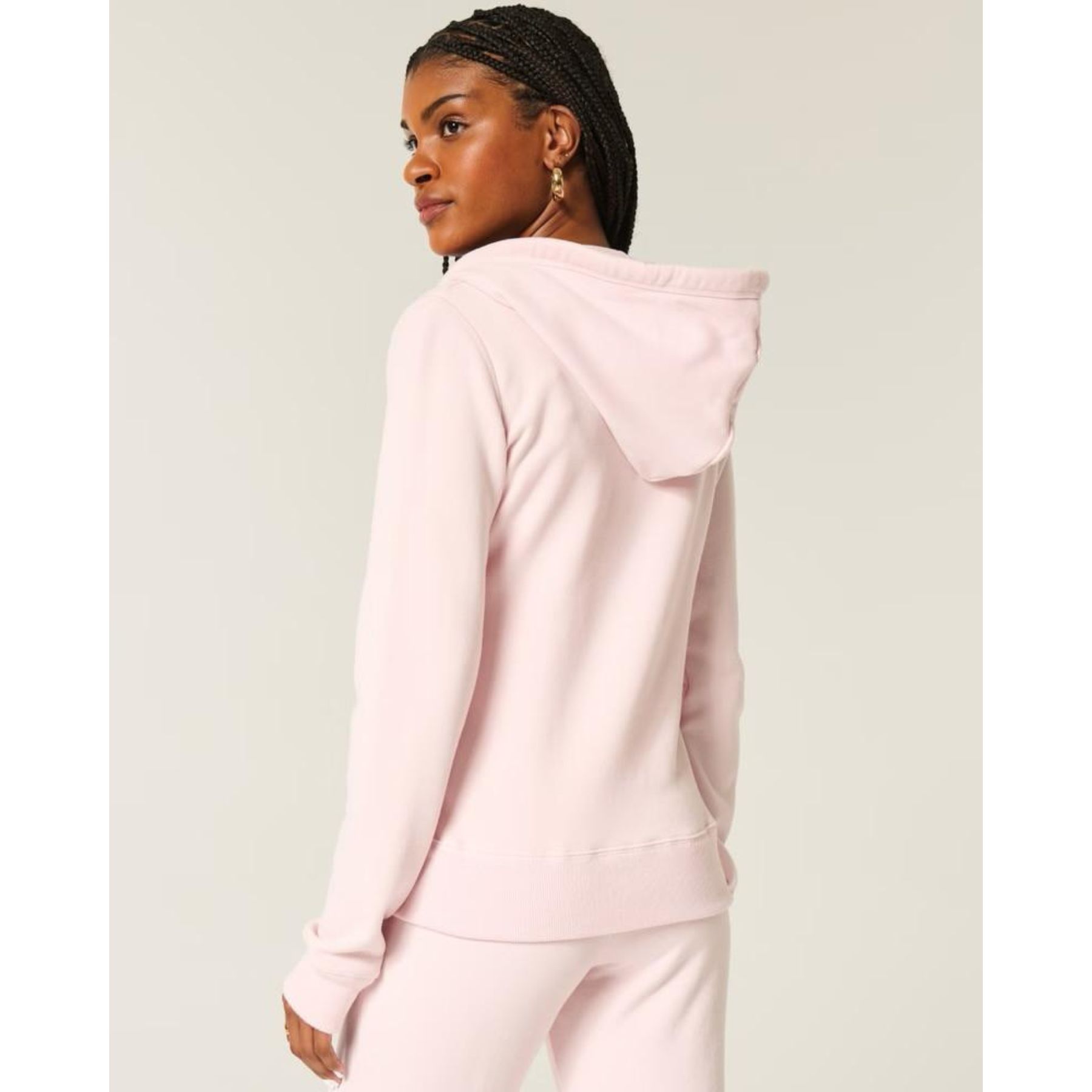 Hollister Casaco de Moletom Cinza Feminino com Zíper Duplo