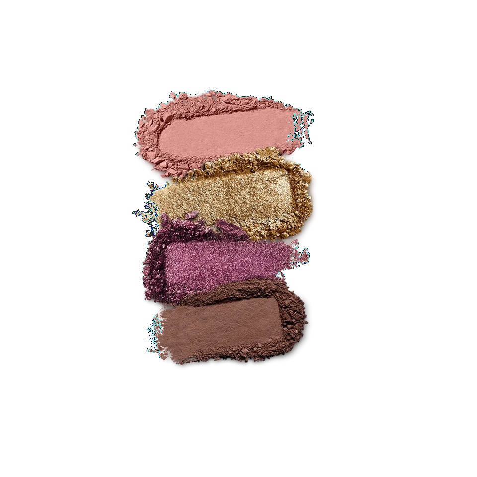 Paleta com quatro sombras com acabamentos mate, metálico e cintilante.