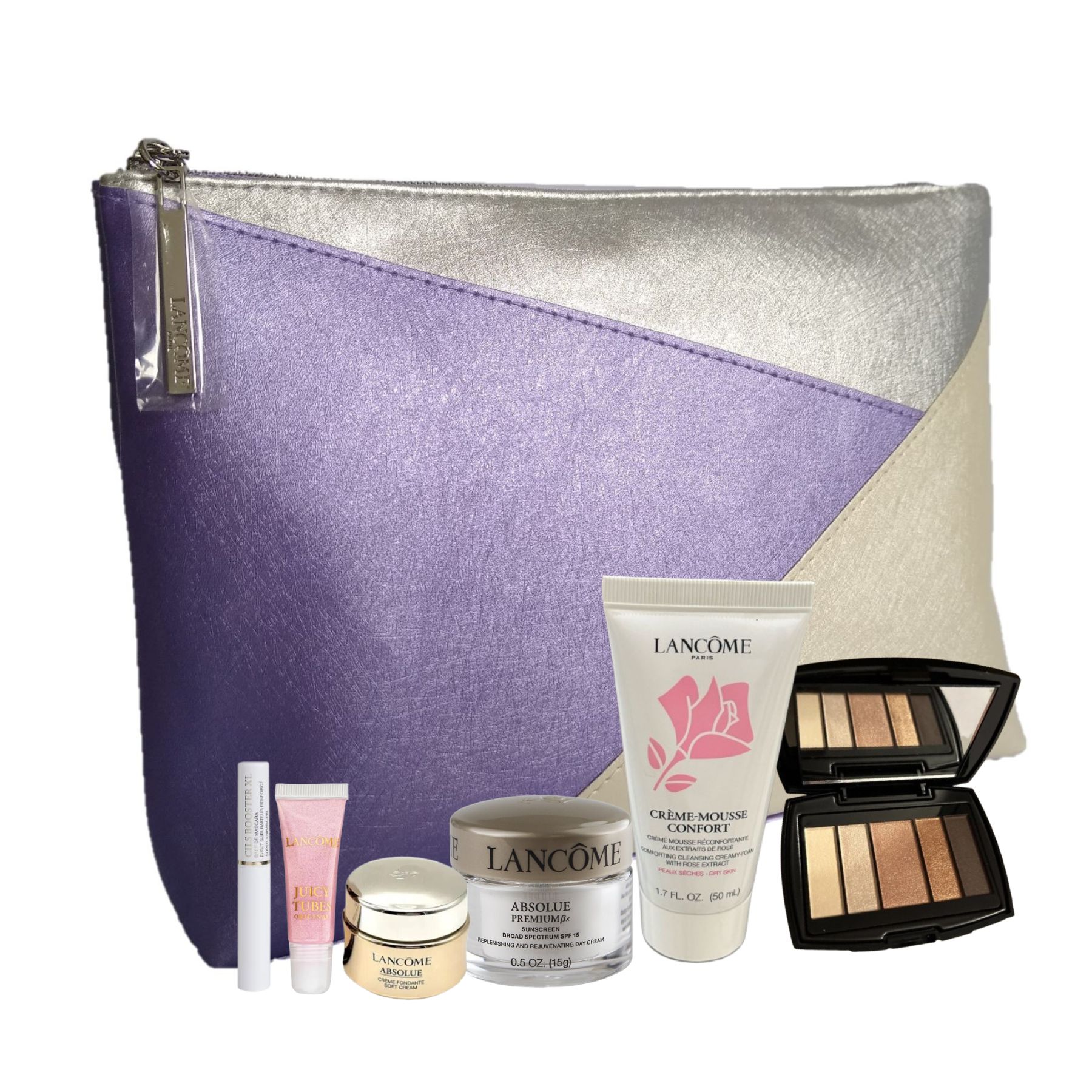 Necessaire Lilás e Prata com 3 Maquiagens + Produtos Faciais