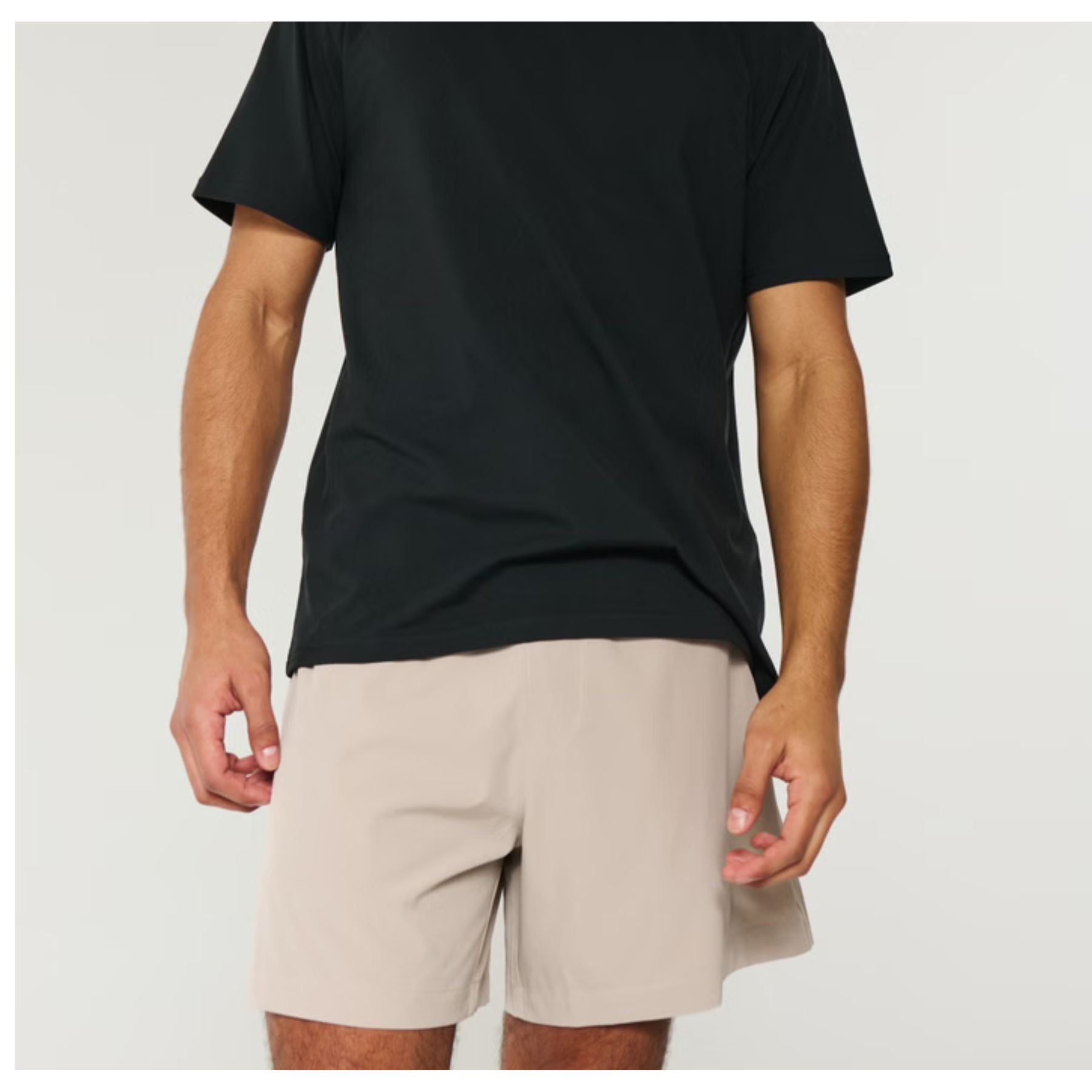 Shorts Hollister Híbrido Esportivo Com Ziper no Bolso – Bege