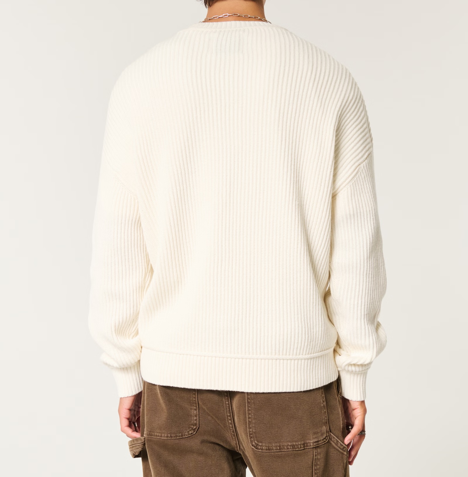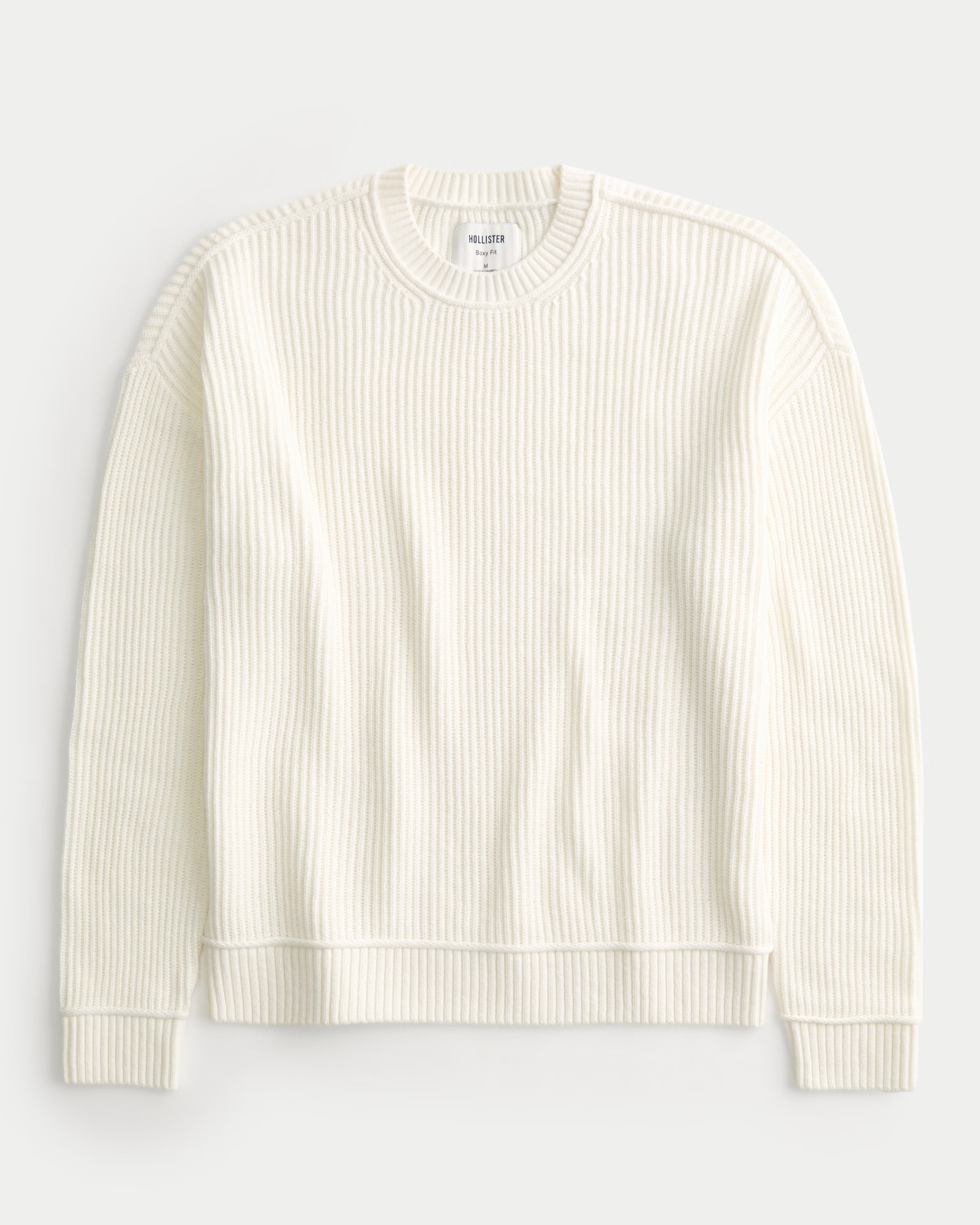 Um suéter regular supermacio com textura canelada e mangas compridas. Decote redondo. Caimento Boxy.