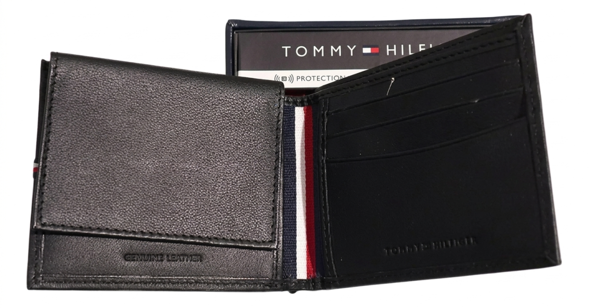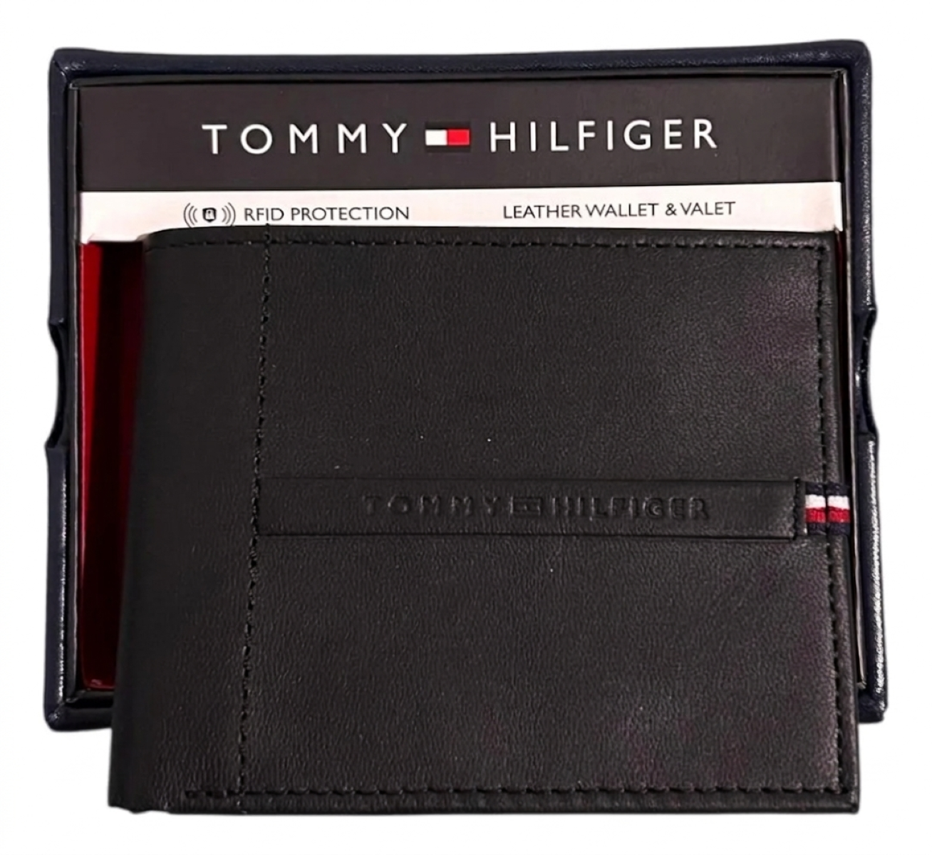 Tommy Hilfiger Bifold Carteira Masculina em Couro Legítimo Preta com Proteção RFID Antifraude Porta Cartões Compacta e Elegante