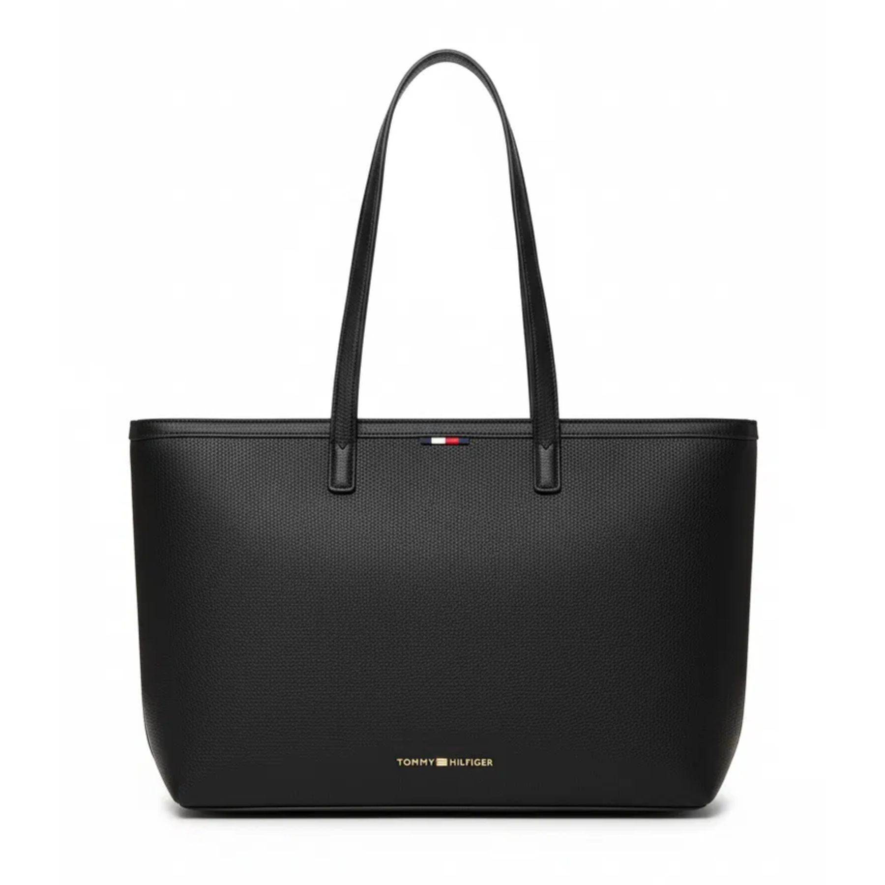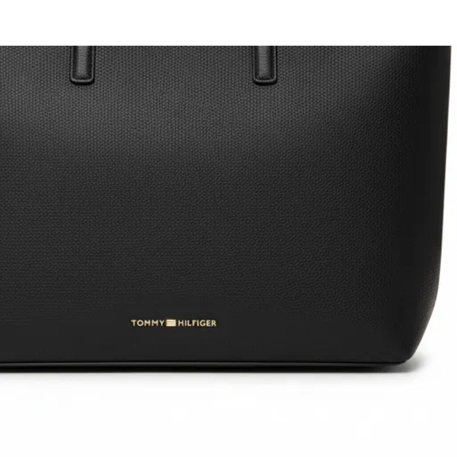 Tommy Hilfiger Bolsa Tote Preta com Logo Dourado