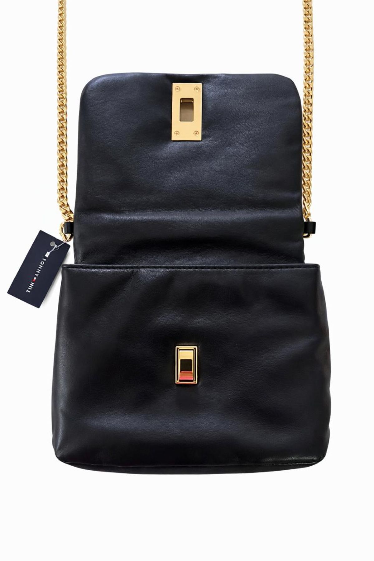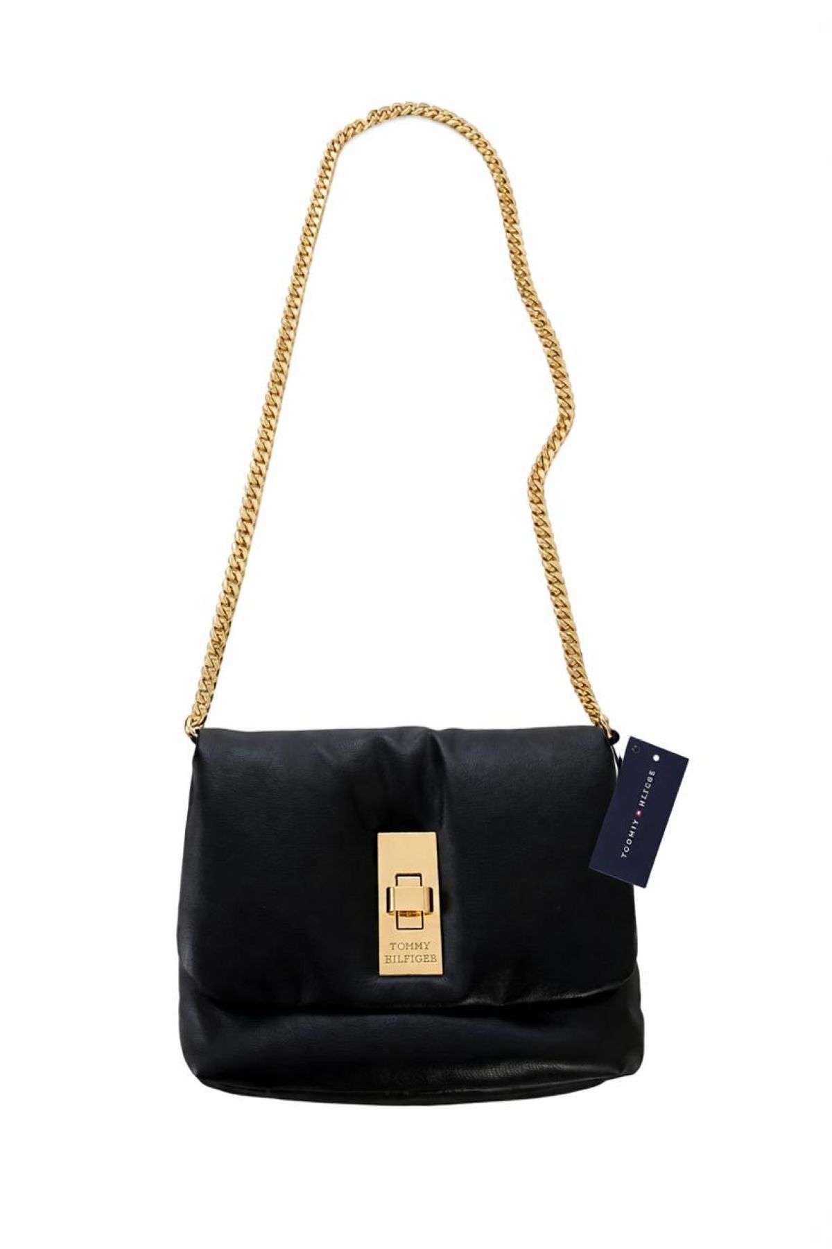 Tommy Hilfiger Bolsa Preta Transversal Com Detalhes Dourado.