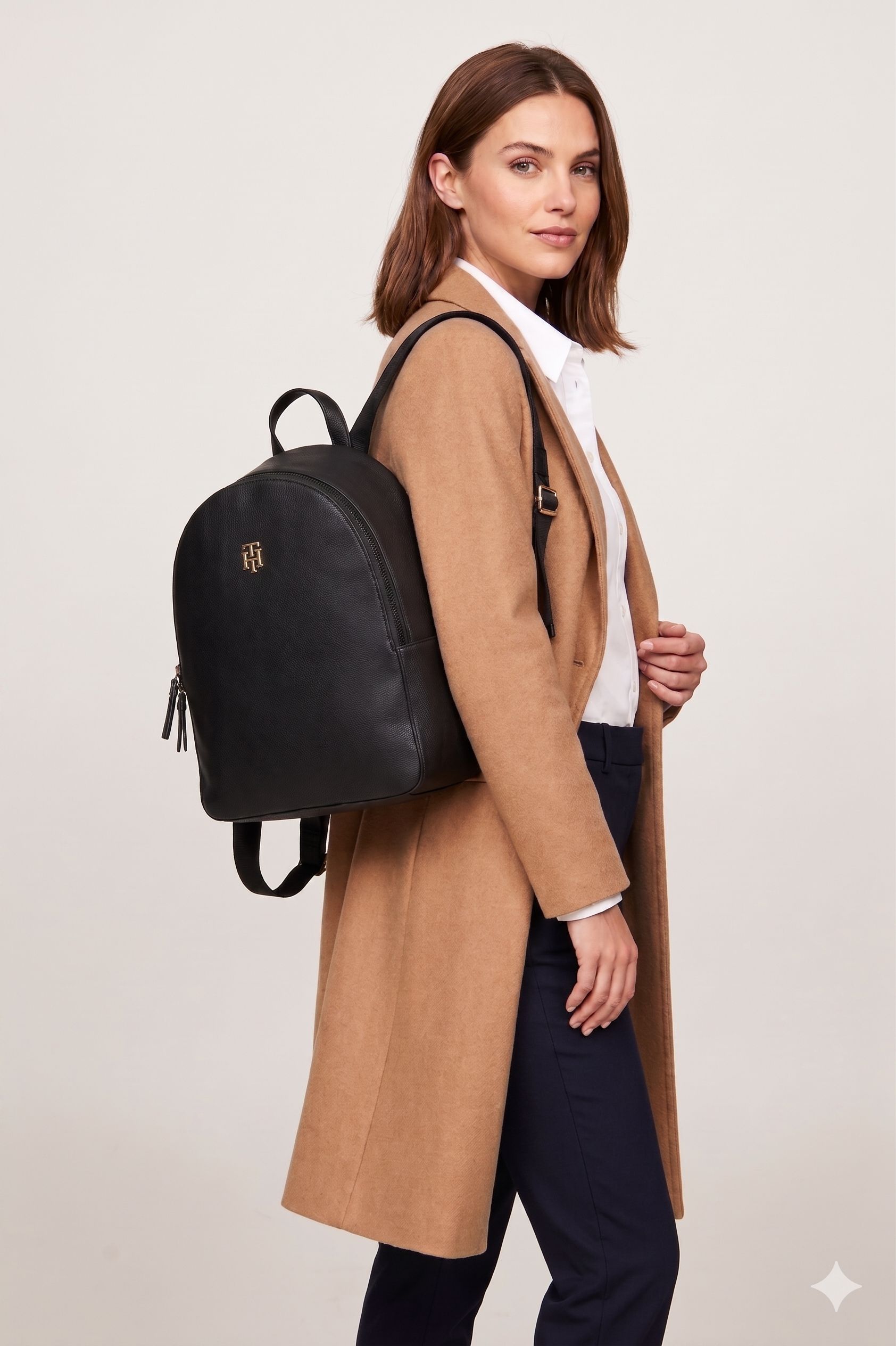 Tommy Hilfiger Mochila Preta Feminina Compacta e Elegante