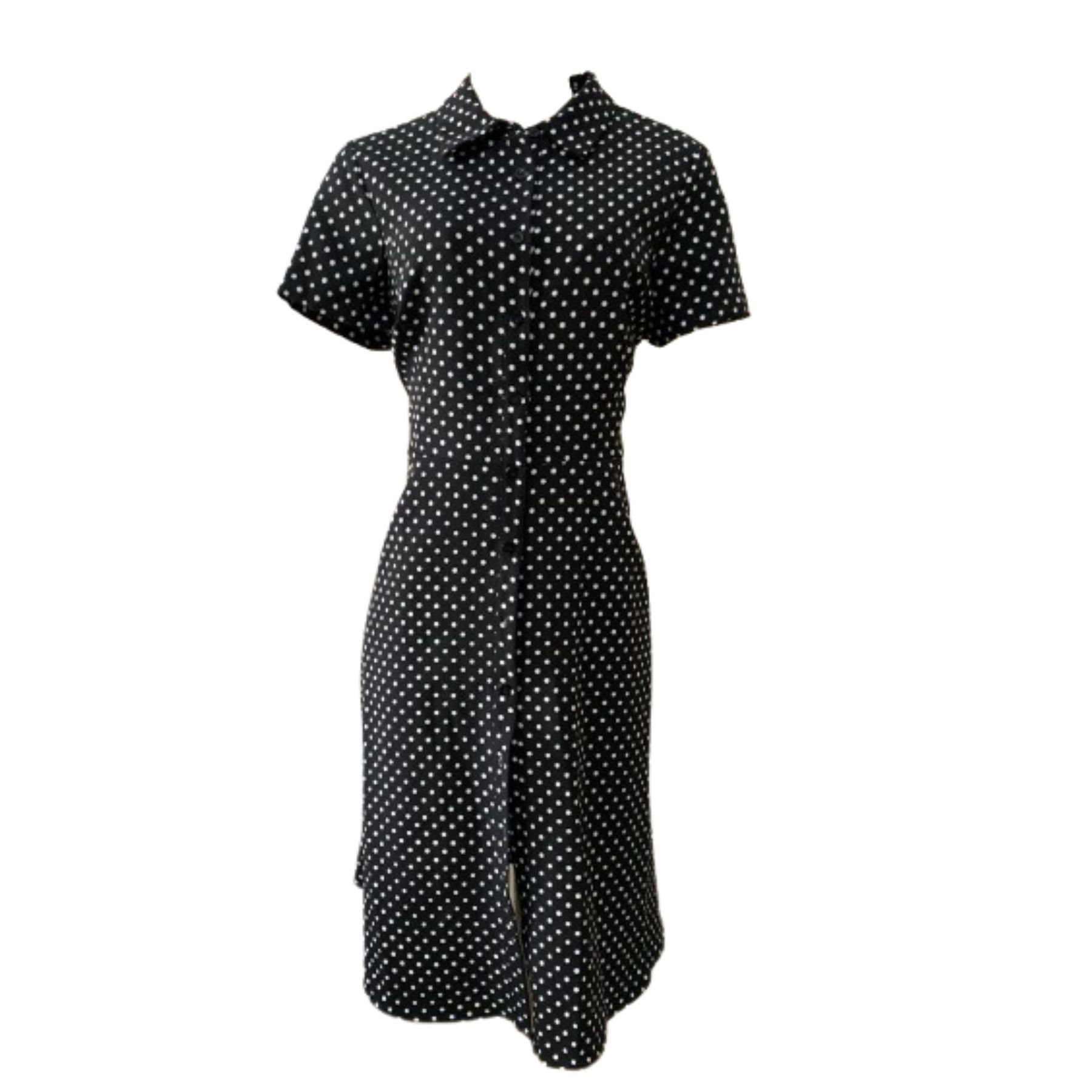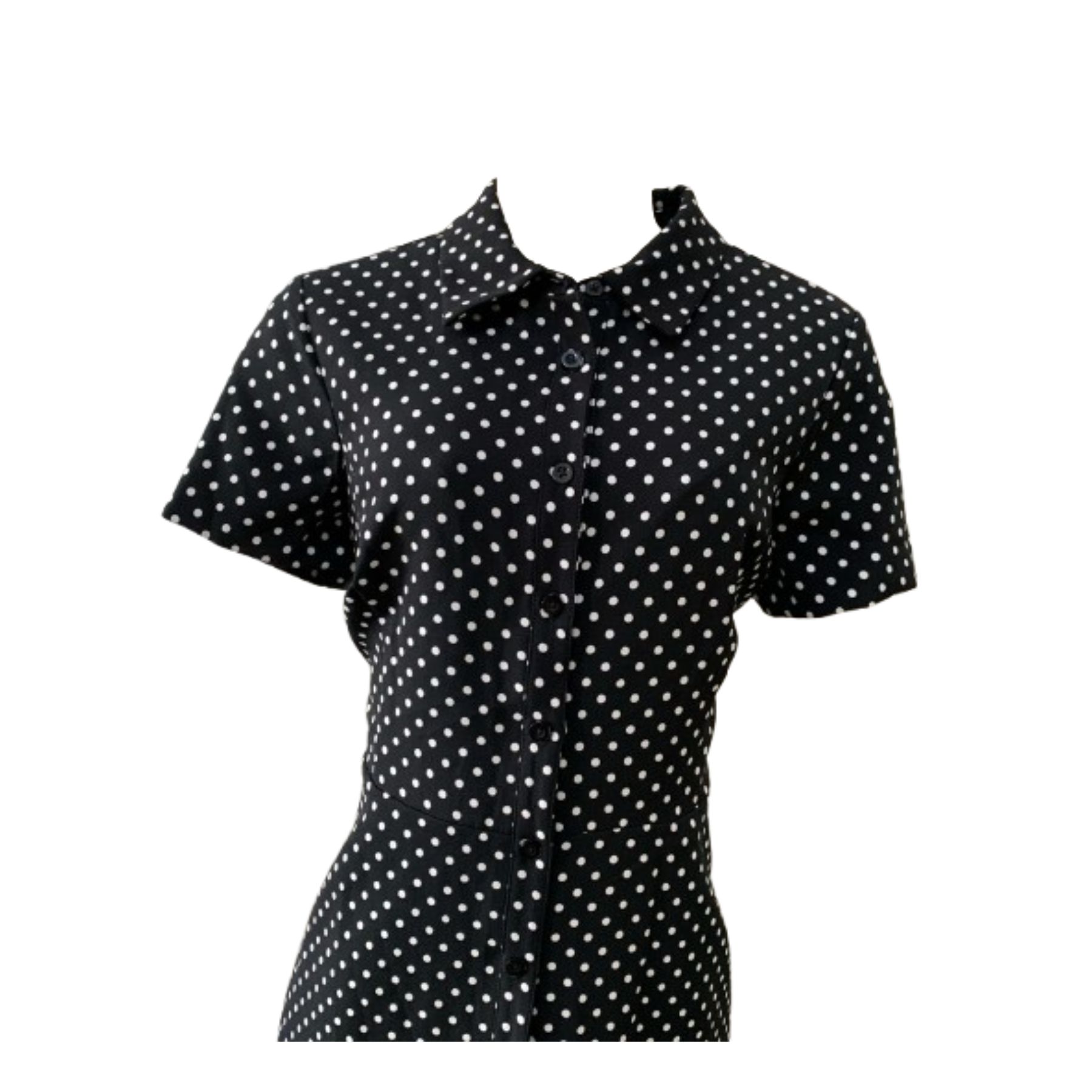 Cor preto de bolinhas brancas, botões na frente