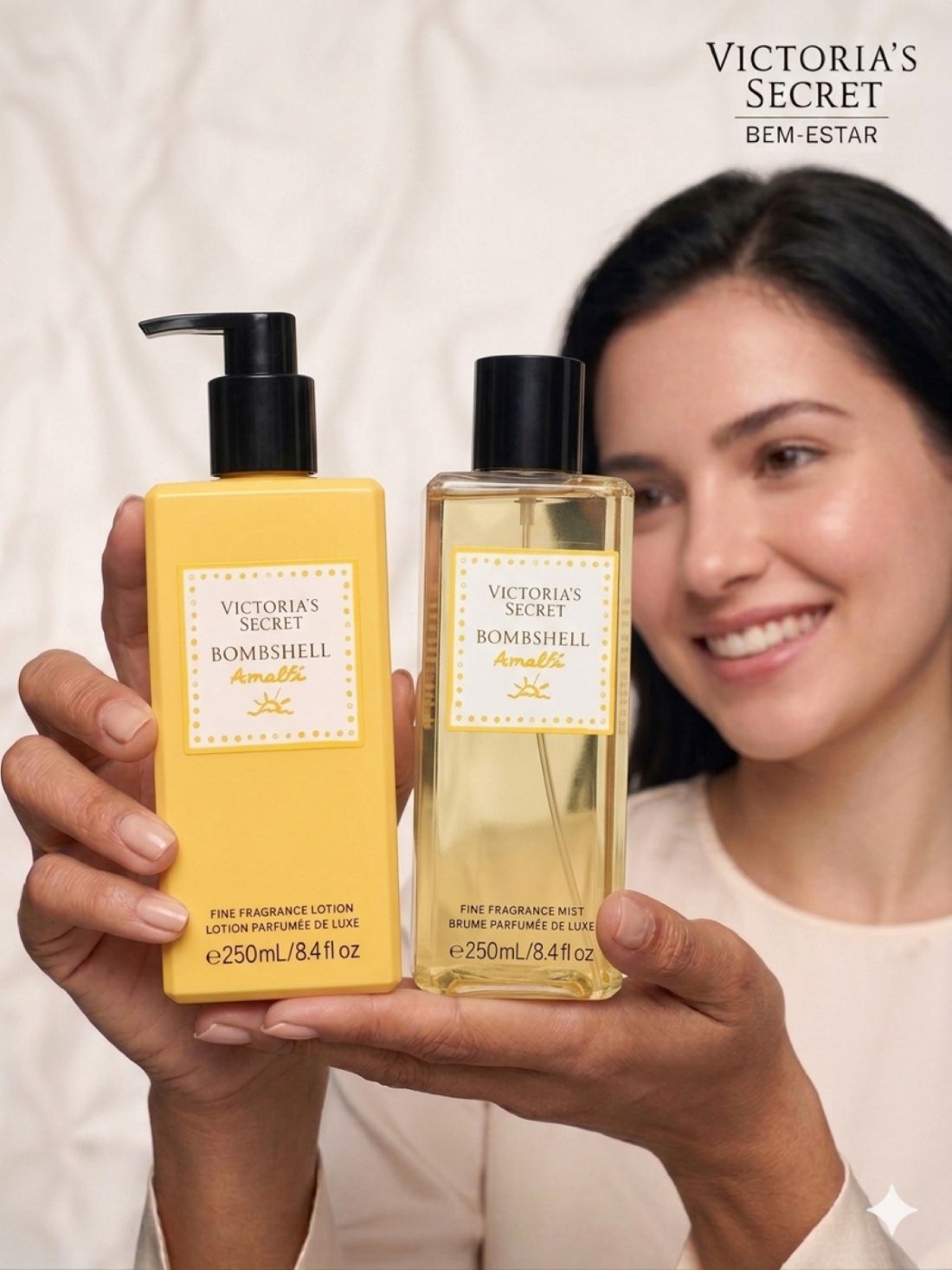 A linha Bombshell Amalfi é inspirada na energia vibrante do verão europeu, trazendo uma fragrância leve, sofisticada e refrescante para o dia a dia.
