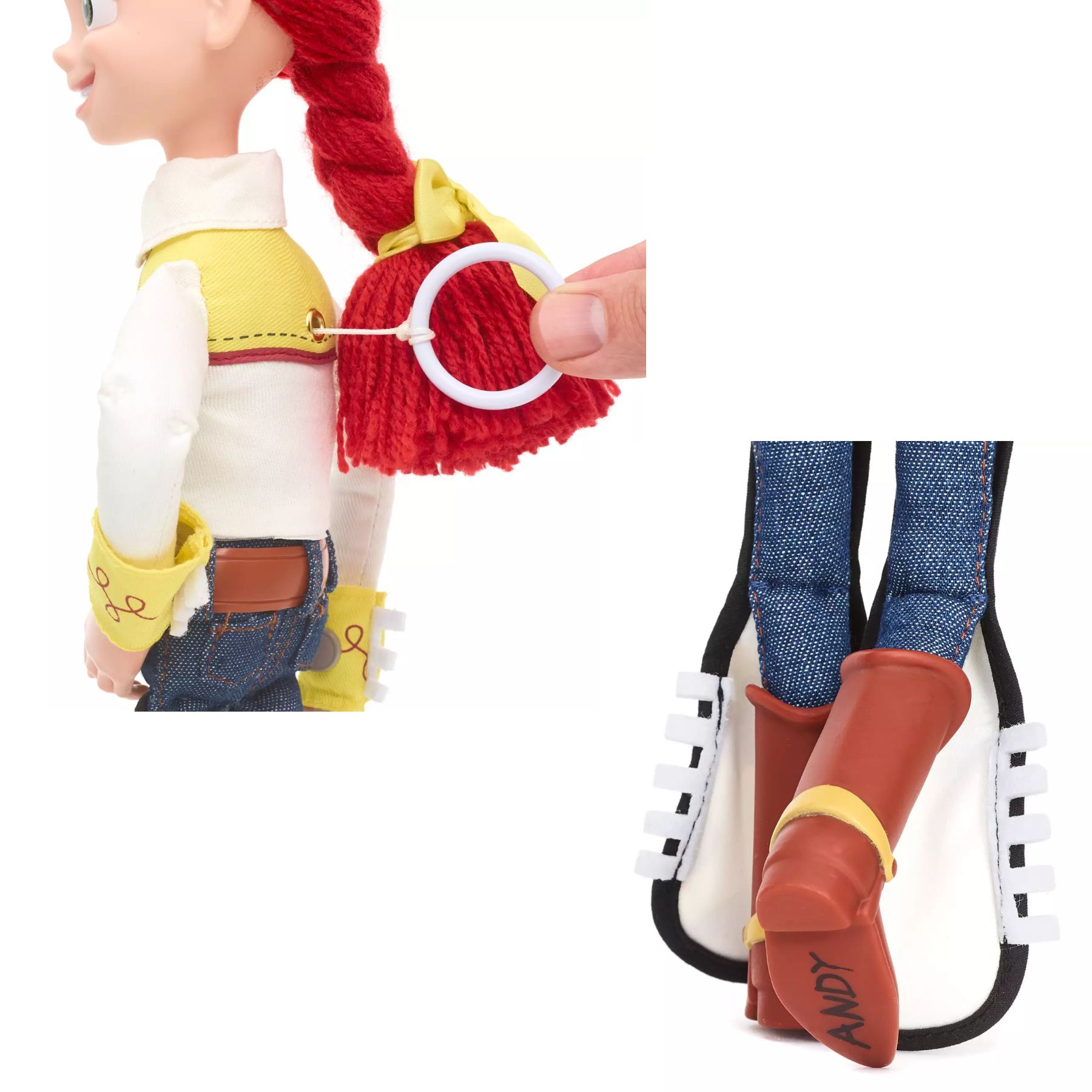 Jessie: divirta-se com Jessie, nossa figura de ação interativa que fala. Puxe a cordinha nas costas da vaqueira que canta iodelei para ativar 14 frases. Além disso, Jessie “fala” frases para seus amigos quando detecta outro personagem interativo de Toy Story por perto. Agora totalmente articulada com esqueleto de arame e capaz de ficar em pé sozinha, ela certamente será amada por crianças e colecionadores!