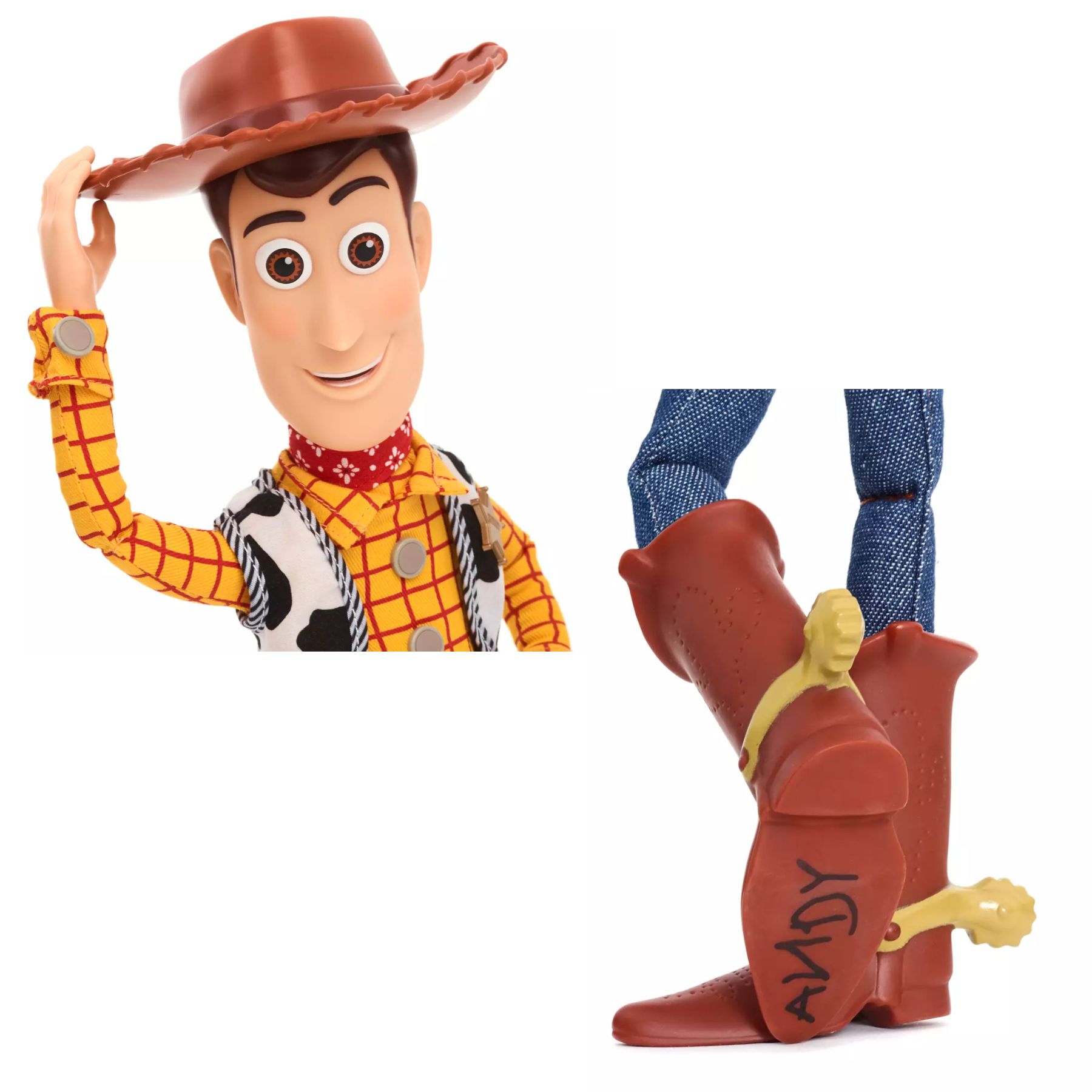 Woody: policial sensato possui mais de 15 frases e começa a “conversar” com seus amigos quando detecta outro boneco interativo de Toy Story .Agora totalmente articulado com esqueleto de arame e capaz de ficar em pé sozinho, ele certamente será amado por crianças e colecionadores!